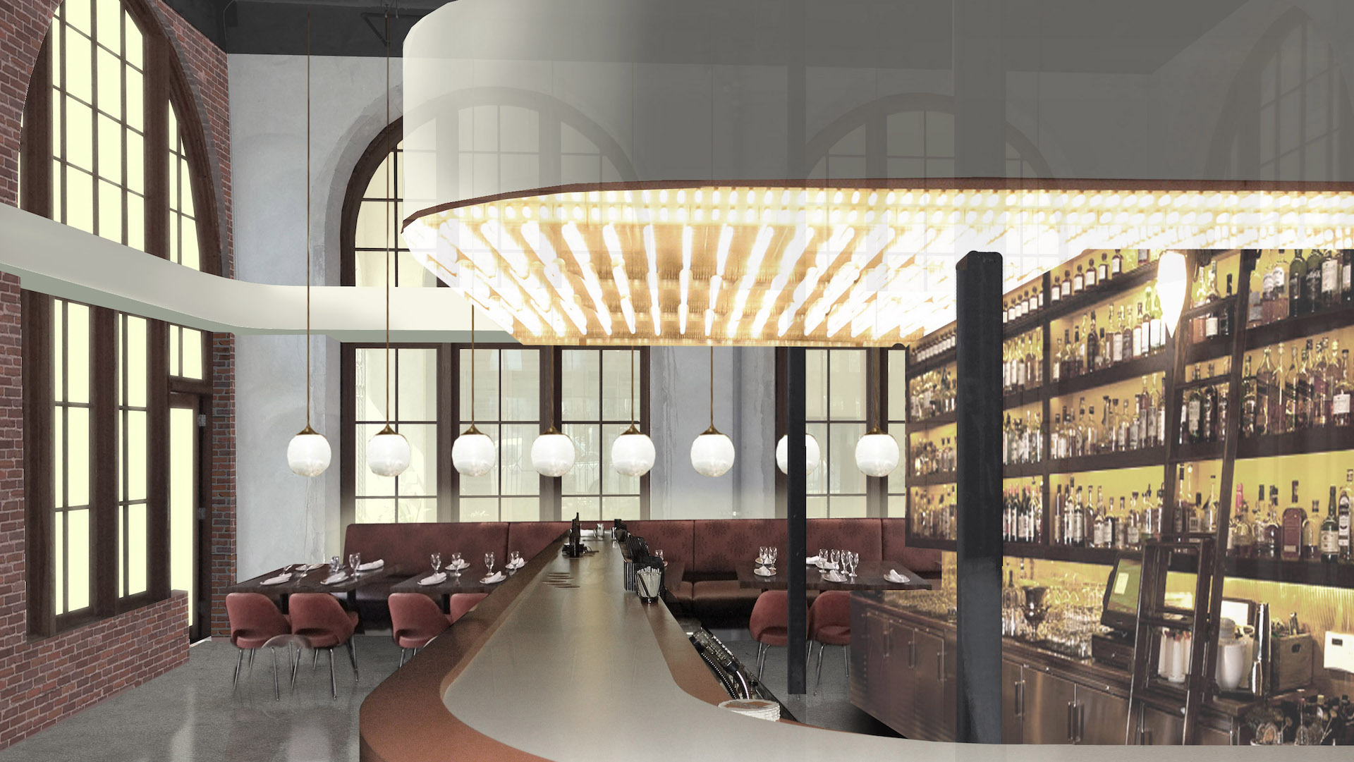 Taking cues from both the Nervi and Richardson projects, this church places a large tower campanile at the crossing. The circular geometries owe more to Trinity, but the glass corners and spatial fluidity are direct quotes of St. Mary. The tower transitions from a square at its base to a circle at the crown, paying homage to Nervi’s typical hyperbolic paraboloid surfaces.